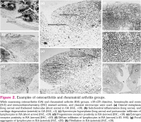 The clinical information of the patients was noted from the archive records, and the following parameters were recorded from the hematoxylin and eosin (H-E) sections: synoviocyte hyperplasia, fibrosis, proliferating blood vessels, focal aggregates of lymphocytes, perivascular infiltrates of lymphocytes, and diffuse infiltrates of lymphocytes, chondroid-osteoid metaplasia, fibrillation, cartilage degeneration, thickened trabeculae, and subchondral inflammation.