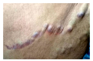Herein, we report a rare presentation of primary APS in a young male as PTS. A 19-year-old male presented with bilateral, non- healing, painless recurrent leg ulcers (Figure 1) and visible abdominal veins (Figure 2) for the last six months. According to the patient, he had recurrent painful swelling of lower limbs from 12 years of age which gradually resolved on some oral medications each time. He was recently diagnosed as hypertensive and was non-compliant to medications. He was a non- smoker. There was no history of prolonged immobilization, recent trauma, or surgery. Family history was unremarkable. On physical examination, all peripheral pulses were palpable. He had deep and dry ulcers on legs with irregular sloping borders along with surrounding lipodermatosclerotic changes bilaterally and prominent distended abdominal veins in flank region bilaterally with decreased flow. A written informed consent was obtained from the patient.