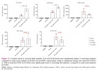 Furthermore, the cytokine levels in the peripheral blood samples may differ from local sites, such as synovial tissue in RA; however, it is known that a large number of cytokines are detected in both synovial tissue and fluid, where they indicate an inflammation, cartilage or bone destruction associated with RA.[26] Also, the duration of the disease can change the cytokine profiles. The proinflammatory cytokines, i.e., TNF-α, IL-1β, and IL-6 begin to be secreted locally in the initial stage of the disease and reach an increasing level toward the late stage.[27] Meanwhile, cytokines such as IL-1β and TNF-α are critical for the development of synovitis.[28]