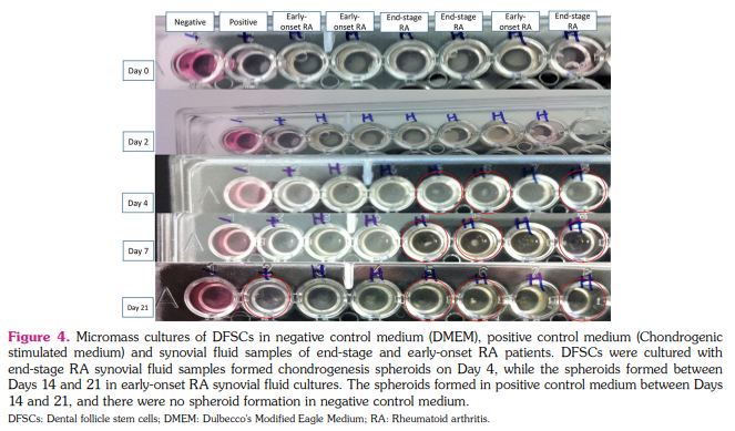 Citation: Genç D, Sezer Kürkçü M, Yiğittürk G, Günaydın B, Elbe H, Akın Aladağ A, et al. Synovial fluid niche promoted differentiation of dental follicle mesenchymal stem cells toward chondrogenesis in rheumatoid arthritis. Arch Rheumatol 2022;37(1):94-109.