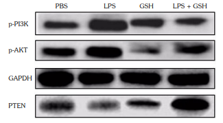Effects of GSH on the protein levels of PTEN/PI3K/AKT pathway in MH7A cells