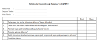 Psoriasis epidemiology screening tool: The questionnaire contains five questions (19). Each question answered "Yes" is scored 1 (one), while each question answered as "No" is scored 0 (zero) and then, the total score is calculated by summing the all item scores of PEST. Questions 1-5 are as follows: 1. Have you ever had a swollen joint (or joints)?; 2. Has a doctor ever told you that you have arthritis?; 3. Do your fingernails or toenails have holes or pits?; 4. Have you had pain in your heel?; 5. Have you had a completely swollen and painful finger or toe for no apparent reason?, respectively.