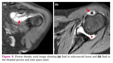 On clinical examination, none of the 32 evaluated shoulder joints had swelling, whereas nine joints showed significant joint effusion on MRI. In comparison, a study done on MRI evaluation of 10 wrist joints of JIA showed synovial volumes to correlate well with swelling score.[21] This indicates the inadequacy of clinical examination to appreciate swelling in deep joints.