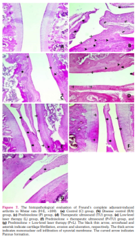 Nonetheless, this study has some limitations. We examined only short periods after the arthritis. It would be remarkably fascinating to investigate the short and long tissue response to the LLLT and TU application in different periods after inflammation. Another limitation of this study is that functional evaluation (such as gait analysis) and synovial fluid analysis were unable to be performed.