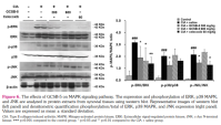 The influence of GCSB-5 on the MAPK signaling pathway was also evaluated using synovial tissues from the ankle joints of mice in each group by western blot. ERK, p38 MAPK, and JNK phosphorylation were enhanced in the saline-treated CIA group compared to the control group (Figure 6). The GCSB-5 (300 mg/kg)-treated group exhibited suppressed ERK, p38 MAPK, and JNK phosphorylation compared to the saline-treated CIA group (Figure 6). Similarly, ERK phosphorylation was inhibited in the GCSB-5 (600 mg/kg)-treated group compared to the saline-treated CIA group (Figure 6).