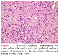 1. Dobrin RS, Vernier RL, Fish AL. Acute eosinophilic interstitial nephritis and renal failure with bone marrow-lymph node granulomas and anterior uveitis. A new syndrome. Am J Med 1975;59:325-33. doi: 10.1016/0002-9343(75)90390-3. DOI: 10.1016/0002-9343(75)90390-3