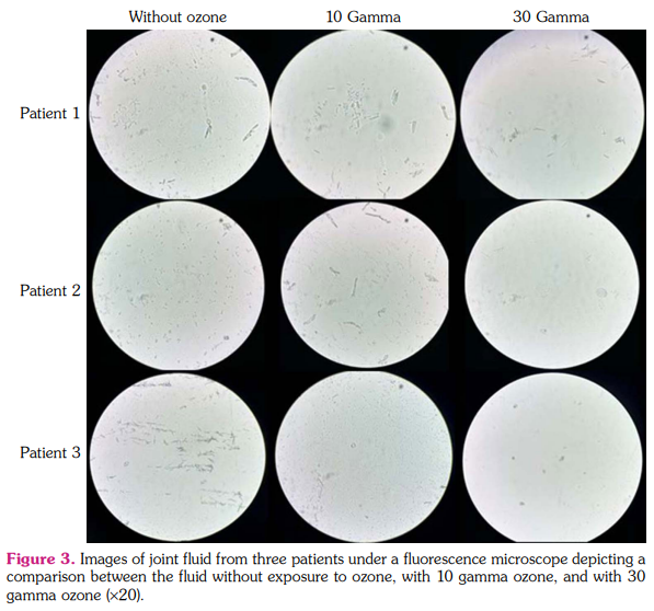 Results: The oxidative stress index and IL-1 β, IL-6, and TNF-α levels in the synovial fluid were lower at 10 and 30 γ compared to 0 and 10 γ, respectively. In vitro ozone injection at 30 gamma was more effective in reducing proinflammatory cytokines in the synovial fluid than that at 10 and 0 γ. Ozone injection into the pathological joint fluid was more effective in terms of total antioxidant status at 10 and 30 γ compared to 0 and 10 γ, respectively. No significant difference in total oxidant status was observed between the groups.