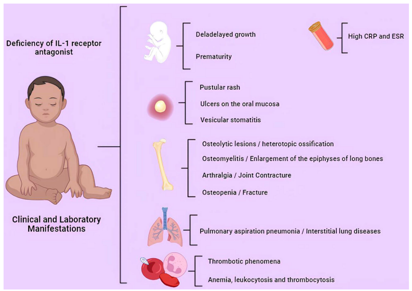 - Rivera-Sepulveda A, Colón-Fontánez F, López M, Puig-Ramos G. Deficiency of interleukin-1 receptor antagonist: New genetic autoinflammatory disease as a diagnostic challenge for pediatricians. J Pediatr Genet 2021;12:227-32. doi: 10.1055/s-0041-1724113. DOI: 10.1055/s-0041-1724113