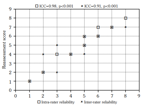 Intra- and inter-rater reliability of BODI was assessed in 20 patients with BD. The results are presented in Figure 5.