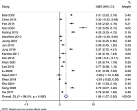 Data were pooled using standardized mean differences (SMD) with 95% confidence intervals (CIs) using the mean and SD of values reported in individual studies. In studies where NT-proBNP levels were reported as median (range or interquartile range [IQR]), the data were transformed into mean and SD values to ensure consistency. Due to anticipated heterogeneity, a random-effects model was selected. Heterogeneity was quantified using the I2 statistic and the Cochran’s Q test:[21] I2 > 50% indicates significant heterogeneity.