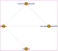 Six studies[4,5,10,16-18] reported the incidence of SAEs, involving 4 drugs: cyclophosphamide, mycophenolate mofetil, nintedanib, rituximab. Two studies conducted pairwise comparisons of drugs; 3 studies compared drugs with placebo; and 1 study reported both comparisons. Among the 4 drugs, mycophenolate mofetil was reported most frequently, and there was closed loops, as shown in Supplementary Figure 4.