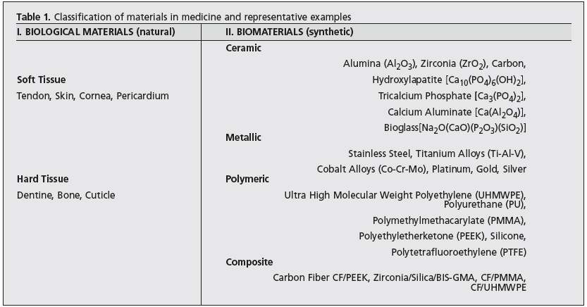 Engineering materials are classified in three main groups: Metals, ceramics and polymers. A fourth group is often added to this classification, composite materials which are made by combining at least two of the three main classes. The properties and characteristics of materials play important roles in almost every modern engineering design, providing problems as well as opportunities for new invention, and setting limits for many technological advances[4]. Medical technology is no exception to this statement, and many engineering materials in all four groups have found applications as well in medicine and dentistry. Any material that is used to make reliable, economic and physiologically acceptable devices to substitute a part or a function of the body can be assessed as a “biomaterial”.