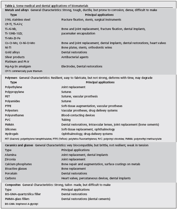 A number of devices and materials such as tooth fillings, needles, sutures, bone plates, catheters, etc. are used in the treatment of disease or injury[8,9] and Table 2 provides a brief listing of synthetic materials used for implantation.