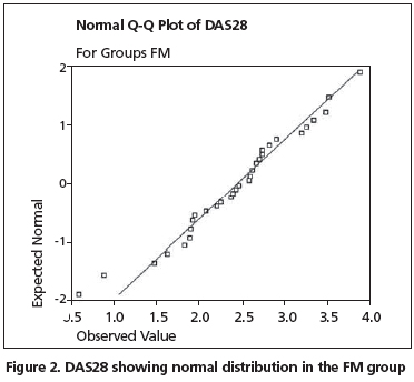 In the present study, DAS28-4v and SF-36 were compared in patients with RA, which is a chronic inflammatory disease, and in patients with FM, which is a chronic non-inflammatory disease.