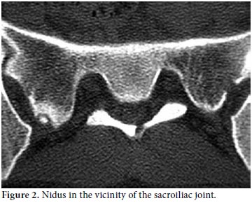 Although osteoid osteoma is a very rare entity in the differential diagnosis of sacroiliac pain, it should be considered in cases that involve an aching pain that is relieved with NSAIDs and in cases involving younger patients when the pain is resistant to conventional treatment. Magnetic resonance imaging is not always diagnostic for osteoid osteoma, but CT has been found to be very helpful in the diagnosis of this type of tumor.