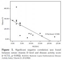Multiple SLE cohorts have low vitamin D levels,[5] but the physiological and clinical consequences of vitamin D deficiency in SLE are not entirely known. Although studies of 25-hydroxyvitamin D [25-(OH)D] levels and disease activity in patients with SLE have not had consistent results, most cross-sectional studies show an inverse relationship between the levels of vitamin D and disease activity.[6-12]