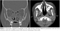 An eight-year-old boy was admitted to the Emergency Department of Hacettepe Children's Hospital with an overnight history of bilateral eye swelling accompanied by sore throat, rhinorrhea and mild fever. The patient had twoyear intermittent upper respiratory tract signs and symptoms such as a yellow-greenish thick nasal discharge and nasal congestion as well as crusty nasal mucosa.