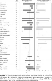 Results: Overall, 345 reports presenting 352 trials were included in the analysis. Of the trials that reported quantitative recruitment data, the median proportion of screened patients who were eligible for participation was 71.9% (interquartile range: 52.7 to 86.5%) and the median proportion of eligible patients who were randomized in a trial was 92.9% (interquartile range: 82.5 to 100%). The median proportion of screened patients who were randomized in a trial was 67.9% (interquartile range: 48.9 to 92.9%), indicating that three patients were screened for every two patients randomized in trials. When this median value was considered as a reference point, trials conducted for 34% of individual treatments randomized lower proportions of screened patients.