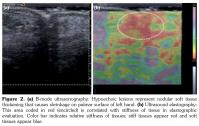 Elastography provides information regarding fibrosis. We showed that thickened aponeurosis and nodules had a firm structure with a predominant red color compared to the surrounding tissue in sonoelastographic findings of DC. Sonoelastography is a potential diagnostic tool which may differentiate both the acute and chronic findings in DC and provide information regarding differential diagnosis.