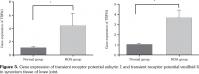 Primer design: Primer was designed and synthesized by Shanghai Biotechnology Service Company in accordance with Gene sequence in GenBank Gene sequence design, together with Oligo v6.6. Sequences for TRPA1, TRPV4 as well as internal reference gene GAPDH were as follows. Sequences of primers used for TRPA1: 5’-GCAGCATTTTCAGGTGCCAA-3’ (forward), primer length: 172 bp 5’-CGCTGTCCAGGCACATCTTA-3’ (reverse), primer length: 172 bp. Sequences of primers used for TRPV4: 5’-CTTTACTTCACCCGTGGGCT-3’ (forward), primer length: 188 bp, 5’-CAGTTGCTCTGGTCCTCGTT-3’ (reverse), primer length: 188 bp. Sequences of primers used for GAPDH: 5'-ACAGCAACAGGGTGGGTGGTGGAC-3’ (forward), primer length: 167 bp, 5’-TTTGAGGGTGCAGCGAACTT-3’ (reverse), primer length: 167 bp. Fluorogenic quantitative PCR: 2 uL complementary deoxyribonucleic acid was added into 8 uL RNase-free water, 8 uL 2.5 RealMasterMix, 1 uL 20 SYBR Green, with a primer pair of 0.5/0.5 uL. Reaction condition includes one cycle of predegeneration at 94 °C for four minutes, and forty cycles of degeneration at 94 °C for 30 seconds, annealing at 60 °C for 30 seconds, extending at 72 °C for 20 seconds. The above PCR product was held at 95 °C for one minute, cooled into 55 °C, and then heated up between 55-95 °C, 0.2 °C/second before drawing solubility curve. Later, 2-ΔΔCT calculation (ΔCT=Sample cycle threshold value- Internal reference cycle threshold value) was used to analyze the relative expression of target genes, GAPDH as internal reference gene for semi- quantitative calculation.