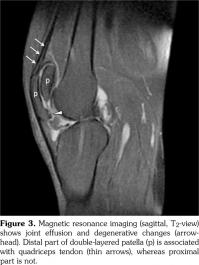 - García-Mata S, Hidalgo-Ovejero A. Partial double-layered patella in a nondysplasic adolescent. J Pediatr Orthop B 2016;25:561-3.