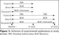 In groups 1 and 4, phosphate-buffered saline (PBS) was injected subcutaneously (100 μL/day) to the shaved back skin. The remaining four groups received subcutaneously 100 μg BLM (Bleocin; bleomycin hydrochloride; Nippon Kayaku, Tokyo, Japan), which was dissolved in PBS (100 μL) to induce dermal fibrosis.(19) BLM was injected to shaved upper back skin for three weeks in groups 2 and 3, and for six weeks in groups 5 and 6. In addition to BLM, paricalcitol (0.3 μg/kg/day) was injected subcutaneously to dorsal front of neck for the first three weeks in group 3 (prophylactic) and the second three weeks in group 6 (therapeutic).(18)