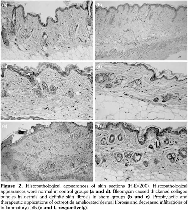 The accumulations of collagen and other ECM molecules lead to fibrosis, although the pathogenesis is not fully elucidated, in scleroderma.(2) One cause of excessive ECM production is activated fibroblasts.(3,4) TGF-β acts a prominent role on the activity of myofibroblast and the production of ECM molecules.(5) In this study, the increased dermal TGF-β1 mRNA expression was detected in the dermal fibrosis model induced by BLM.