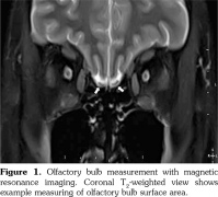 - Buschhüter D, Smitka M, Puschmann S, Gerber JC, Witt M, Abolmaali ND, et al. Correlation between olfactory bulb volume and olfactory function. Neuroimage 2008;42:498-502.