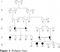 The clinical features of both siblings exhibited chronic osteomyelitis and CDA, which were consistent with the diagnosis of MS. The family history revealed a second degree cousin who was diagnosed with MS during the infancy period (Figure 1, #20), a case that we had previously published.(6) Genetic studies were requested for both patients and their mother. The father’s deoxyribonucleic acid (DNA) sample was not available.