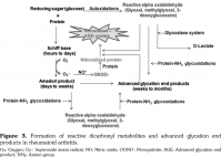 Many studies propose the implications of oxidative and nitrosative stress and production of reactive dicarbonyl species (which ultimately form advanced glycation end products) in the pathogenesis of RA. Oxidative stress is a state in which the dynamic redox balance between oxidants and antioxidants is strongly switched towards oxidative potential leading to interruption of redox signaling and control and/or molecular damage.[10] A parallel process is nitrosative stress which can be defined as the ratio of nitrosants to antioxidants as >1 with the participation of reactive nitrogen species (RNS).[11] Similarly, advanced glycation end products (AGEs) formation and action is another parallel process linked to oxidative and/or nitrosative stress and inflammation.[12]