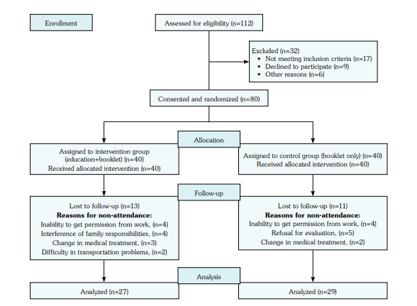 After the initial evaluation, both groups received an educational booklet which developed for this study. The content of booklet was prepared by the authors based on consensus.