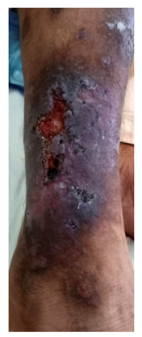 Investigations confirmed the diagnosis of primary APS and excluded other causes of hypercoagulability. Treatment with warfarin 5 mg, subcutaneous enoxaparin 60 mg as the bridging therapy, amlodipine/valsartan 10/160 mg P.O. and atorvastatin 20 mg P.O., all once daily, was initiated. He was advised compression dressing with zinc oxide for venous ulcers.