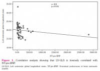 Statistical analysis was performed using the SPSS version 15.1 software (SPSS Inc., Chicago, IL, USA). Continuous variables were expressed in median and interquartile range (IQR), while categorical variables were expressed in number and frequency. The KolmogorovSmirnov or Shapiro-Wilk test was performed to determine whether continuous variables distributed normally. The chi-square test and Fisher exact were used to compare categorical variables. Continuous variables were compared using the Mann-Whitney U test. The receiver operating characteristic (ROC) curve analysis was performed to determine the cut-off value of the NT-pro-BNP with specificity and sensitivity that predicted subclinical left ventricular dysfunction. The Spearman correlation analysis was used to determine the correlation between LV-GLS and NT-pro-BNP. A p value of <0.05 was considered statistically significant.