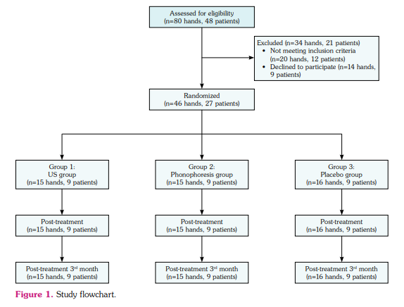 Citation: Ortanca B, Armağan O, Bakılan F, Özgen M, Berkan F, Öner S. A randomized-controlled clinical trial comparing the effects of steroid phonophoresis and therapeutic ultrasound in carpal tunnel syndrome. Arch Rheumatol 2022;37(4):517-526.
