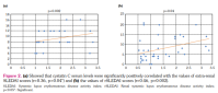 The serum Cys C levels were significantly positively correlated with the values of ESR (r=0.3, p=0.05), serum Cr (r=0.41, p=0.007), 24-h urinary protein (r=0.58, p<0.001), anti-dsDNA titers (r=0.55, p=0.002), and both extra-renal SLEDAI scores (r=0.36, p=0.04 (Figure 2a) and rSLEDAI (r=0.46, p=0.002 (Figure 2b), as well as histopathological renal class (r=0.7, p=0.0001). However, these levels were significantly negatively correlated with eGFR (r=-0.35, p=0.02) and C3 levels (r=-0.47, p=0.002). On the other hand, the serum β2M levels were significantly negatively correlated with C4 levels (r=-0.31, p=0.04) and significantly positively correlated with extra-renal SLEDAI scores (r=0.3, p=0.05). In contrast, neither serum Cys C nor β2M levels showed a significant association with the rSLICC (p=0.38 and p=0.94, respectively), AIs (p=0.5 and p=0.89, respectively) and CIs (p=0.22 and p=0.67, respectively). Serum Cys C and β2M levels were not correlated with each other (r=0.21, p=0.19, respectively) (Table 4).
