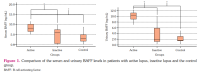 Systemic lupus erythematosus disease activity was stratified into active and inactive groups based on the Systemic Lupus Erythematosus Disease Activity Index 2000 (SLEDAI-2K) scores;[14] patients with SLEDAI-2K scores >4 and SLEDAI-2K scores ≤4 were considered to be in the active (n=34) and inactive (n=28) SLE groups, respectively. The control group participants (n=25), matched for age and sex, were selected from the healthy companions of the SLE patients.