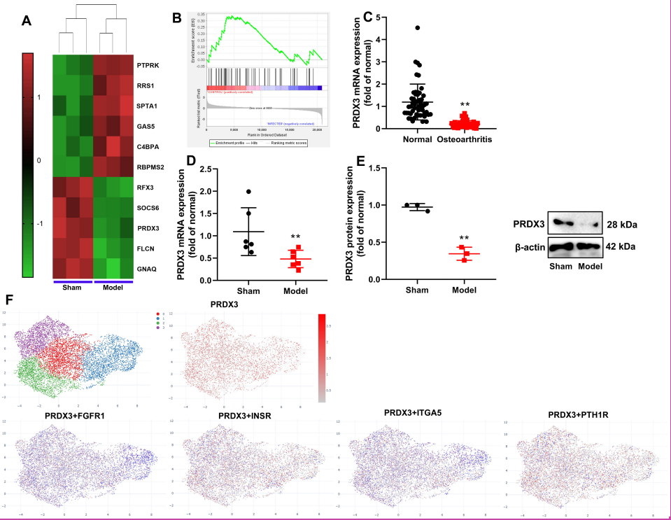 Materials and Methods: In the osteoarthritis model, the expression of PRDX3 was downregulated. Single-cell analysis revealed that the PRDX3 gene was expressed in bone cells of osteoarthritis patients.