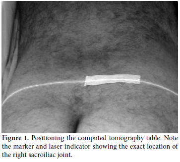 Between January 2009 and December 2011, all patients with SIJ pain who were scheduled to undergo CT-guided intraarticular steroid and local anesthetic injection were considered for this study. A presumptive diagnosis of SIJ pain was established on the basis of patient history, physical examination, laboratory findings, and characteristic radiological features (erosions, subchondral sclerosis with increased bony density and joint space narrowing),[10] and CT and MRI scans were undertaken if needed. Sacroiliac joint pain persisting for at least two months with a failed conservative treatment (failure to respond to nonsteroidal anti-inflammatory drug (NSAID) therapy for a period of four weeks) was accepted as the major indication for injection therapy.