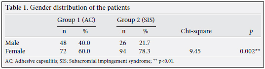 In both the SIS and AC groups, the proportion of females was higher than males, with the number of females being significantly higher in the SIS group compared with the AC group (p<0.01) (Table 1).