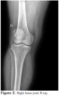 The patient returned to the hospital after 10 days complaining of the same symptoms. An ultrasound of the right knee revealed areas of inflammation, and synovial fluid was aspirated and sent for sampling. However, the culture and microscopy were normal. Following this, the patient was given another injection of intraarticular betamethasone into right knee, and the patient's sulfasalazine dosage was increased to 1 g twice daily. Again he responded well to the treatment and was subsequently discharged.