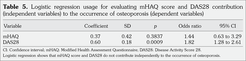 Conclusion: Physical disability and disease activity contribute to the occurrence of osteoporosis in patients diagnosed with RA.