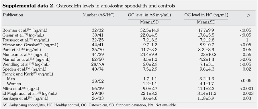 - Franck H, Keck E. Serum osteocalcin and vitamin D metabolites in patients with ankylosing spondylitis. Ann Rheum Dis 1993;52:343-6.