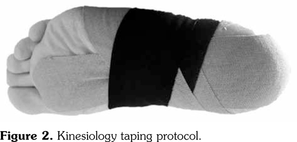 Like KT, ESWT is widely used in the treatment of PF. The efficacy and safety of ESWT on chronic PF have been demonstrated in several randomized clinical trials.(22-26) ESWT causes extreme excitement of the axon, destroys unmyelinated sensory fibers, improves symptoms by initiating an inflammatory response to the secretion of growth factors or nitrous oxide and revitalizes tissues by increasing angiogenesis.(3,9) Some researchers have reported that ESWT is effective in the treatment of PF in comparison to a control group.(25,26) However, other relevant studies have found no benefit to ESWT for PF.(27,28) This discrepancy may be explained by methodological differences. For example, the use of local anesthesia,(23,29,30) applicator position,(23) and the use of different energy densities of ESWT(31) are all factors that may have affected study results. In a study by Lee et al.,(31) a medium-energy (0.16 mj/mm(2)) ESWT group showed statistically significant pain reduction and improved function scores compared to a low-energy (0.08 mj/mm(2)) group. In another study, Park et al.(32) measured the long-term effects of ESWT on PF and found that subjective pain began to decrease one week after the first treatment session, and continued to improve with time, up to a mean of 24 months. KT and ESWT have several advantages over surgery in the treatment of PF. Both ESWT and taping do not require patients to avoid weight- bearing, and allow patients to return to work and the activities of daily life within just one or two days.
