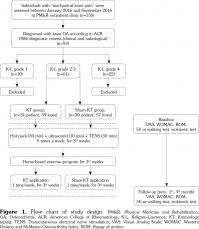 All patients’ age, height, weight, occupation, level of education, duration of symptoms, and K-L grade were recorded. Visual Analog Scale (VAS) and Western Ontario and McMaster Osteoarthritis Index (WOMAC) values were recorded for all patients before treatment, at the end of treatment, and at first and third months after treatment. The active knee joint range of movement (goniometric measurement), 50-meter walking time, and isokinetic knee extensor muscle peak torque measurements were also evaluated for all patients at baseline, at the end of treatment, and at first and third months after treatment.